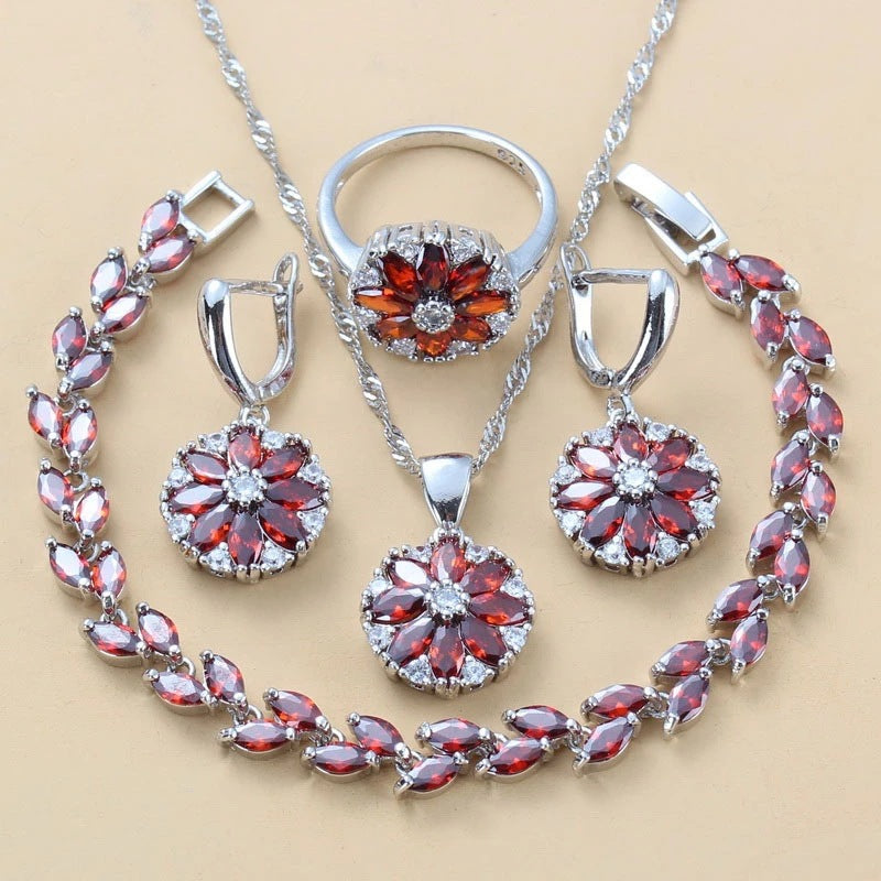 Women's Gem Pendant Earrings Item Four-piece Ring Set Pack