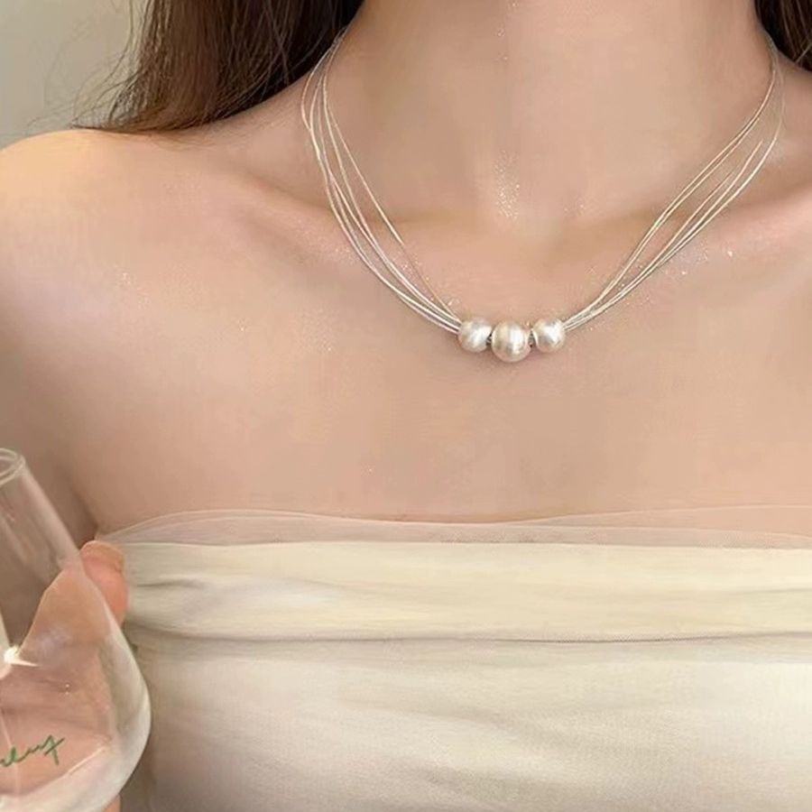 Summer Double-layer Pearls Necklace INS Fashion Clavicle Chain Necklace Jewelry For Beach