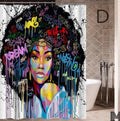 Art Design Graffiti Art Hip Hop African Girl with Black Hair Big Earring with Modern Building Shower Curtain for Bathroom Decor