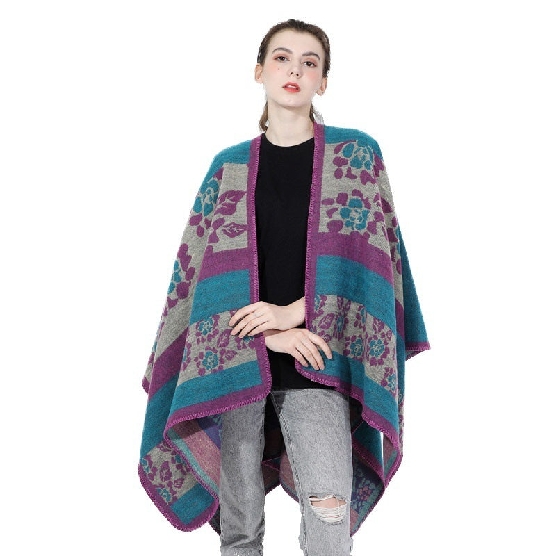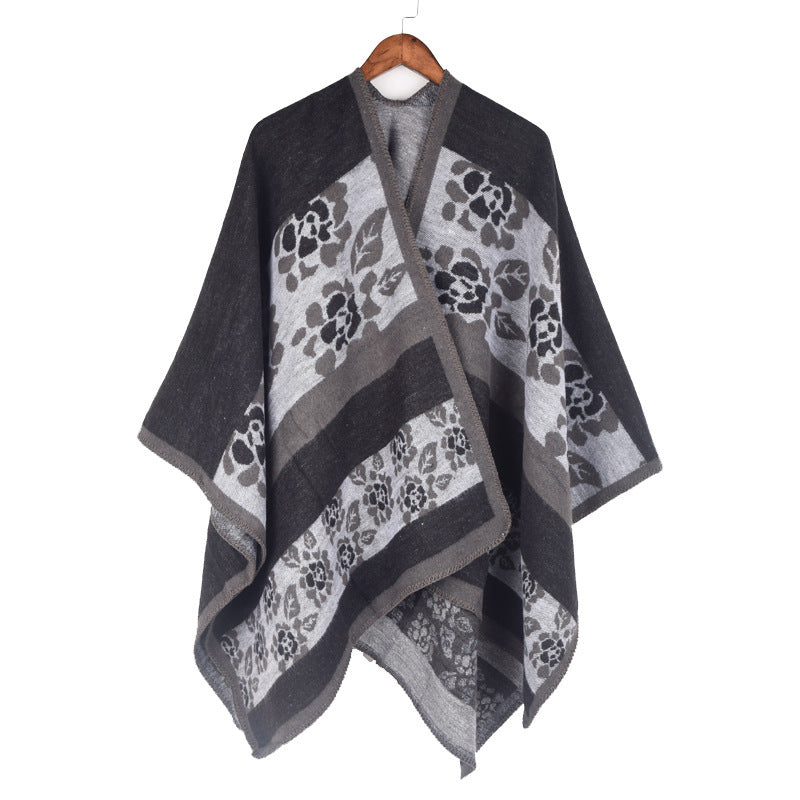 Autumn And Winter Women's Jacquard Split Shawl Flower Cloak