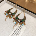 Bohemian Style Colorful Moon Sequined Tassel Earrings