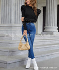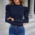 Bubble Sleeve Slim Leopard Buckle Personality Ruffled Top