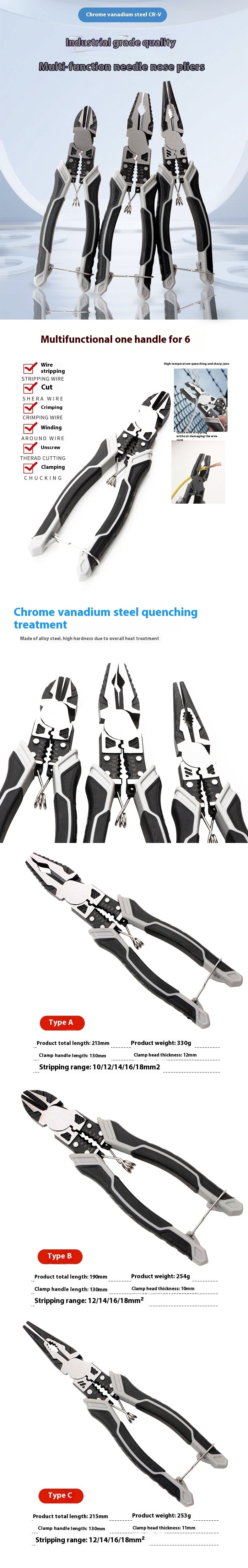 Multi-functional pointed pliers type C Specification: 21.5cm * 5.5cm * 2cm
