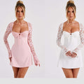 Fashion Corset Lace Long Sleeve Dress Sexy Y2K Backless Lace Up Short Dresses Womens Clothing
