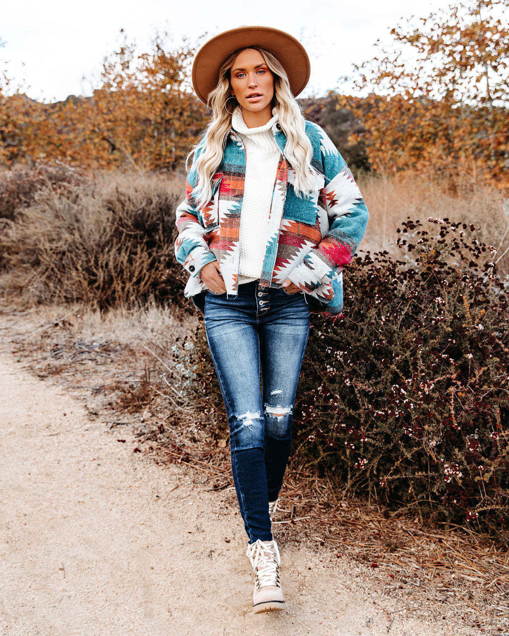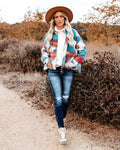 Fashion Retro Lapels Printed Short Loose Woolen Coat Women