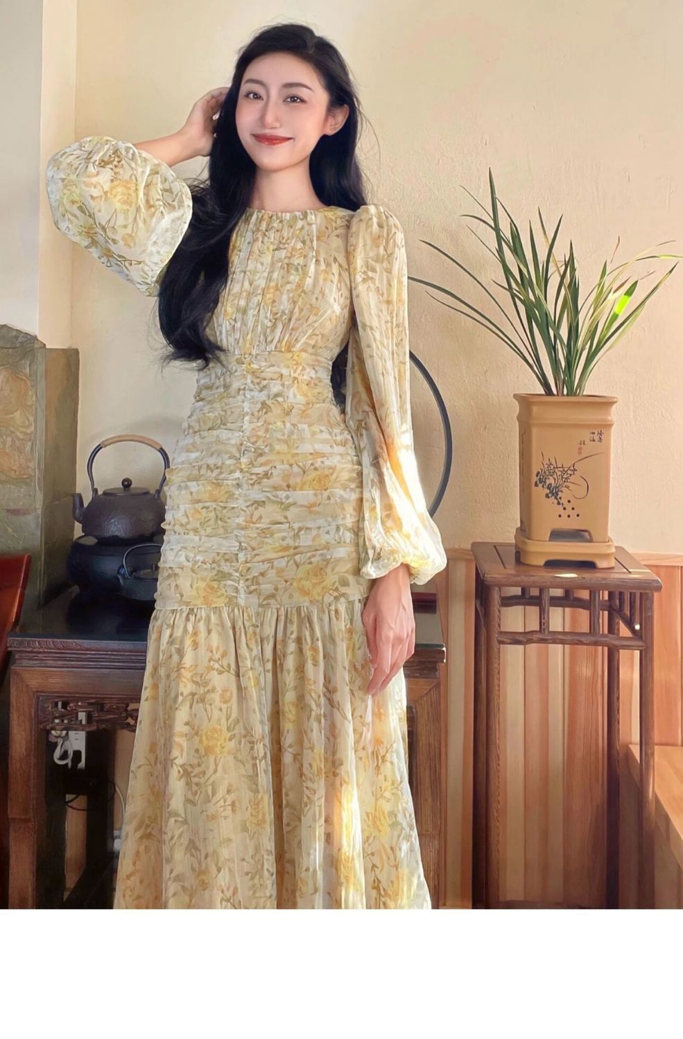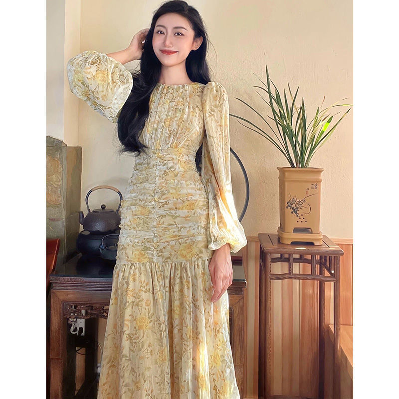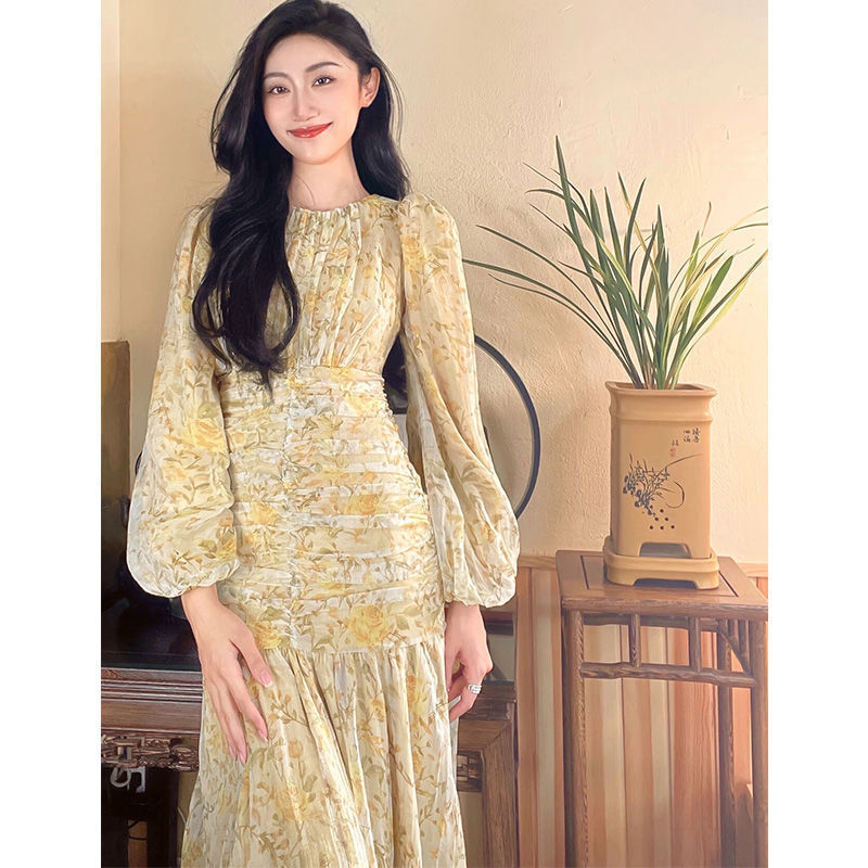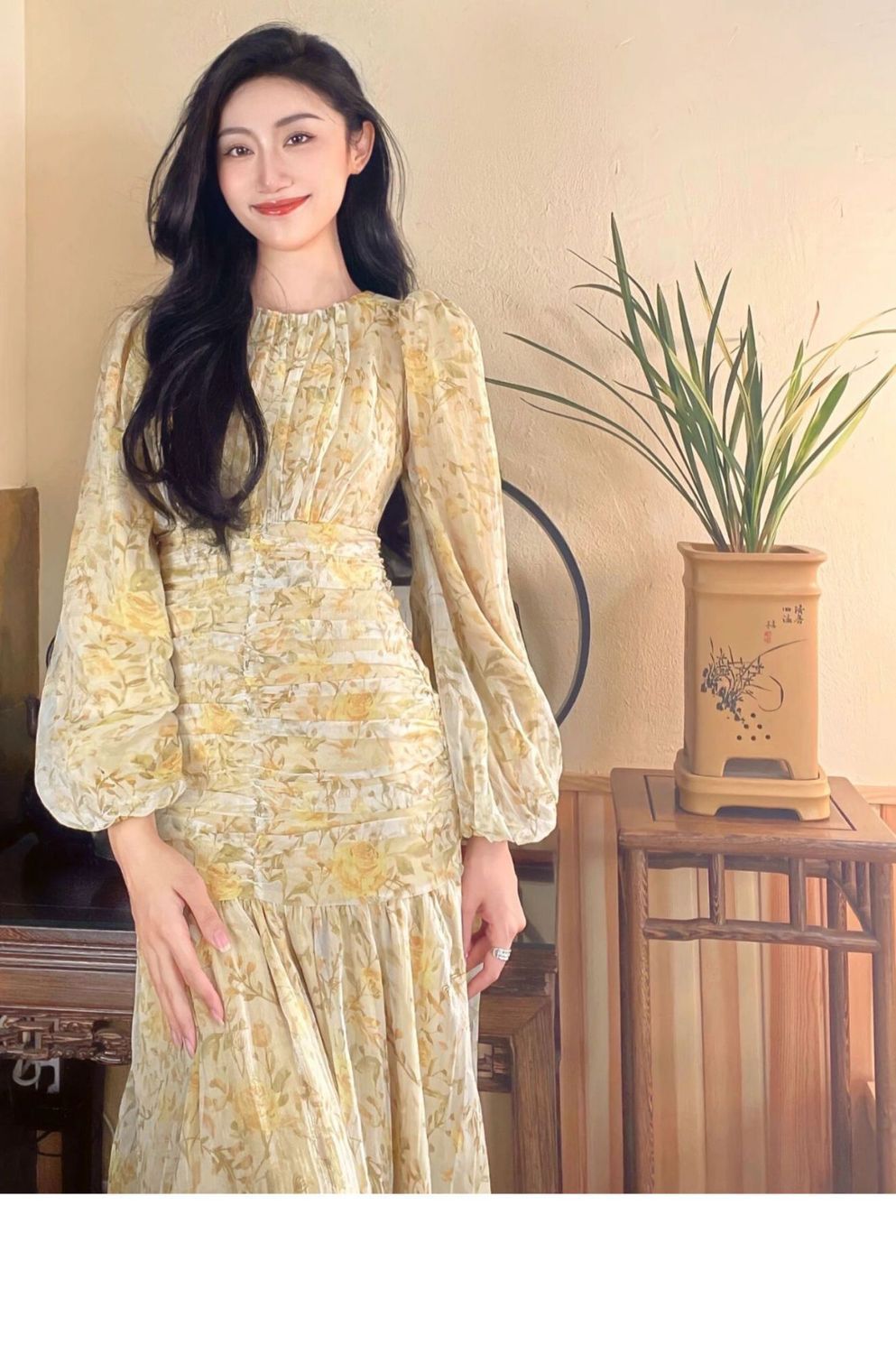 French Style Style Long Sleeve Floral Dress Fashion High-end Temperament