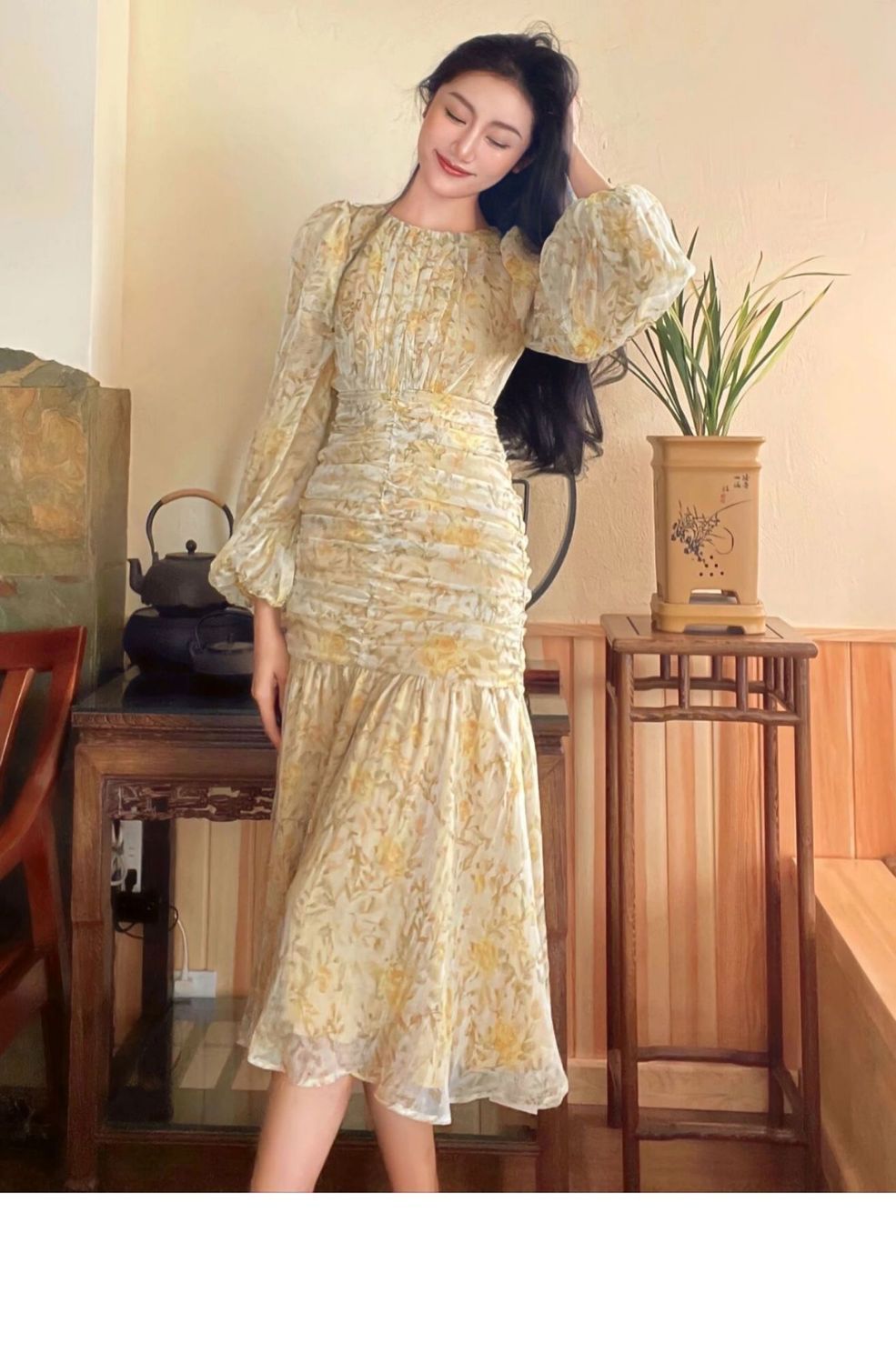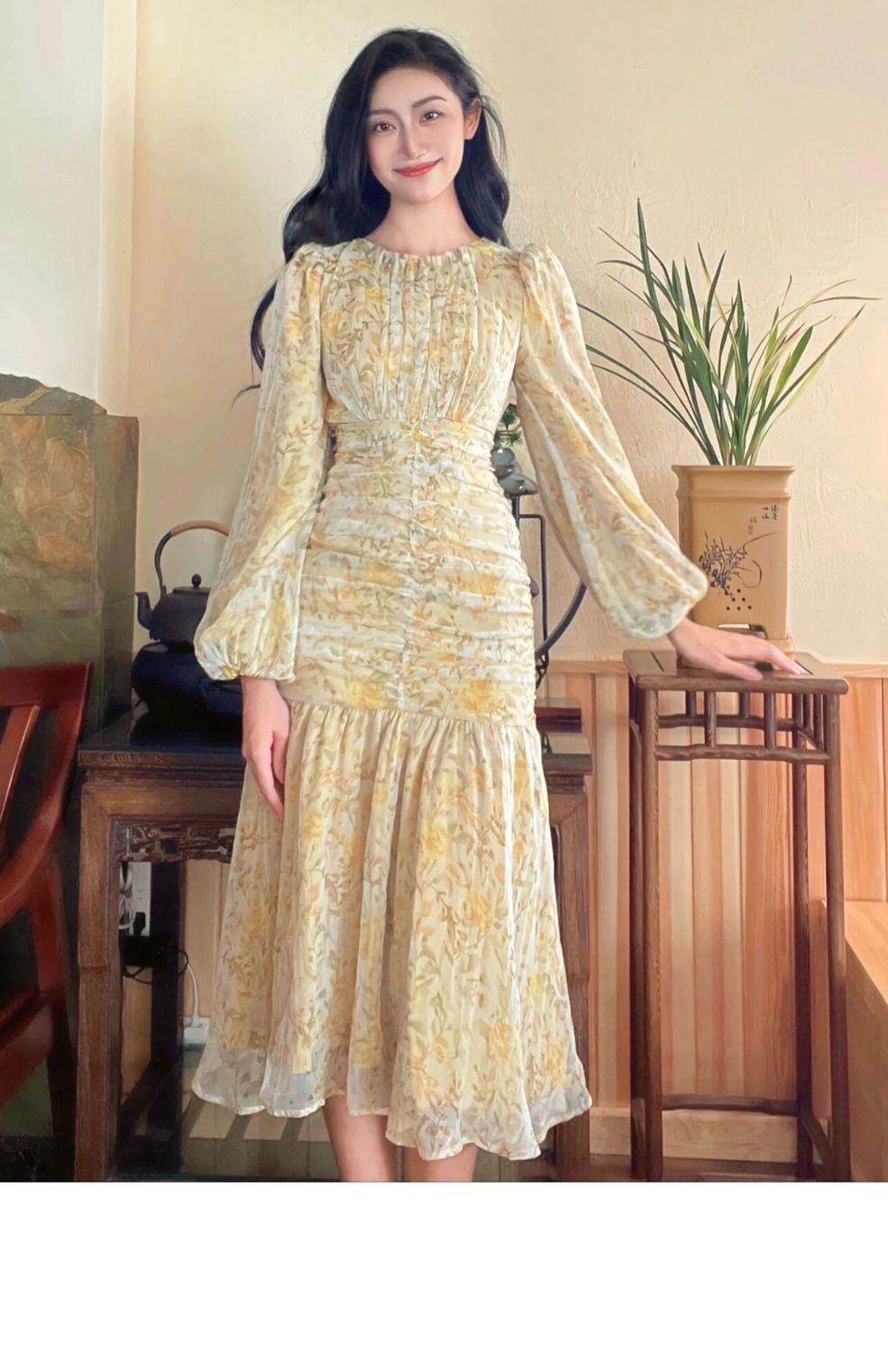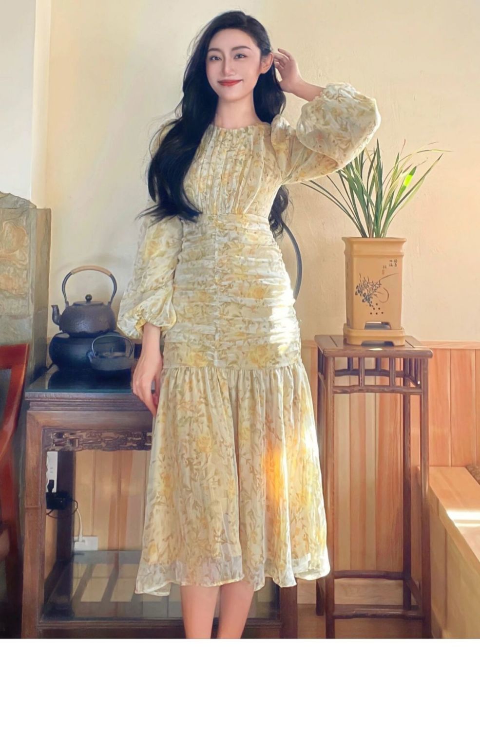 French Style Style Long Sleeve Floral Dress Fashion High-end Temperament