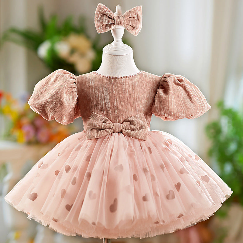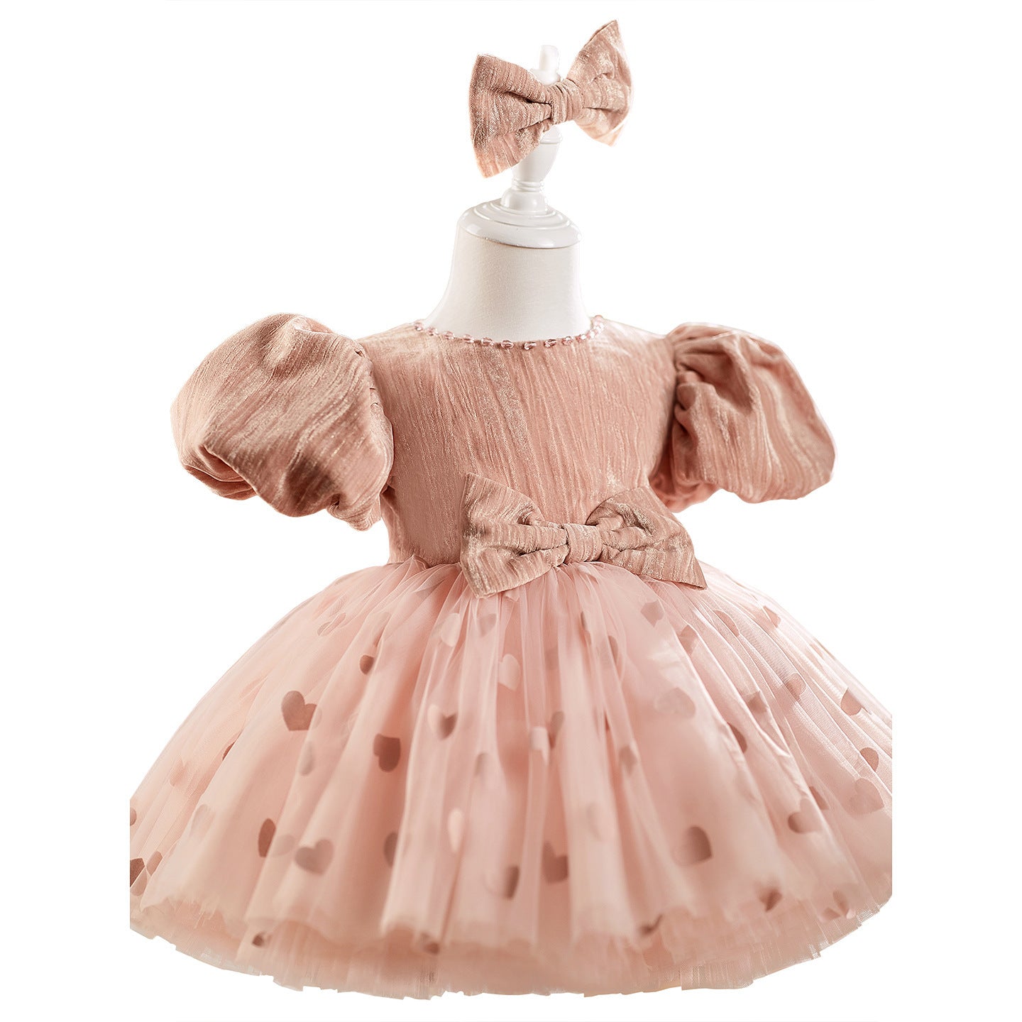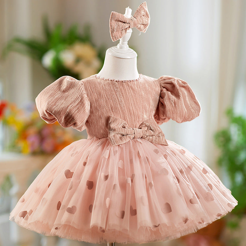 Girls' Dress Birthday Bow Puff Sleeve Puffy Gauze Princess Dres Children Dinner Suit
