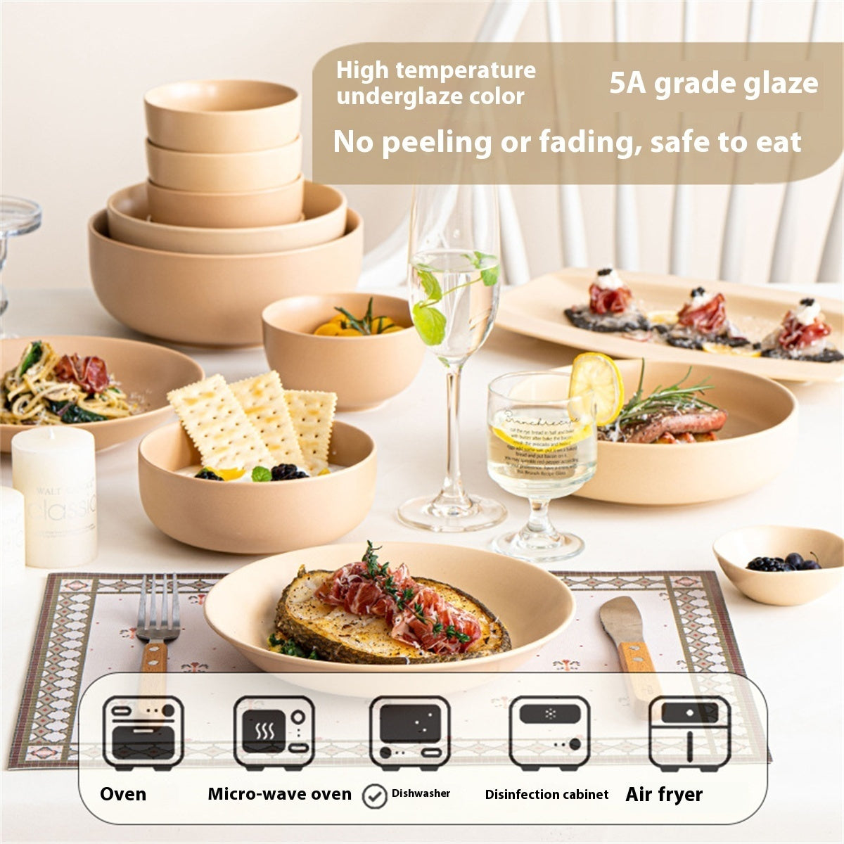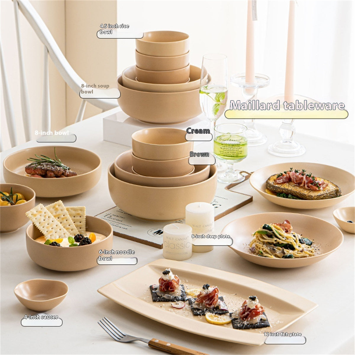 Household Matte Milk Tea Bowl And Plate Set Household Ceramic