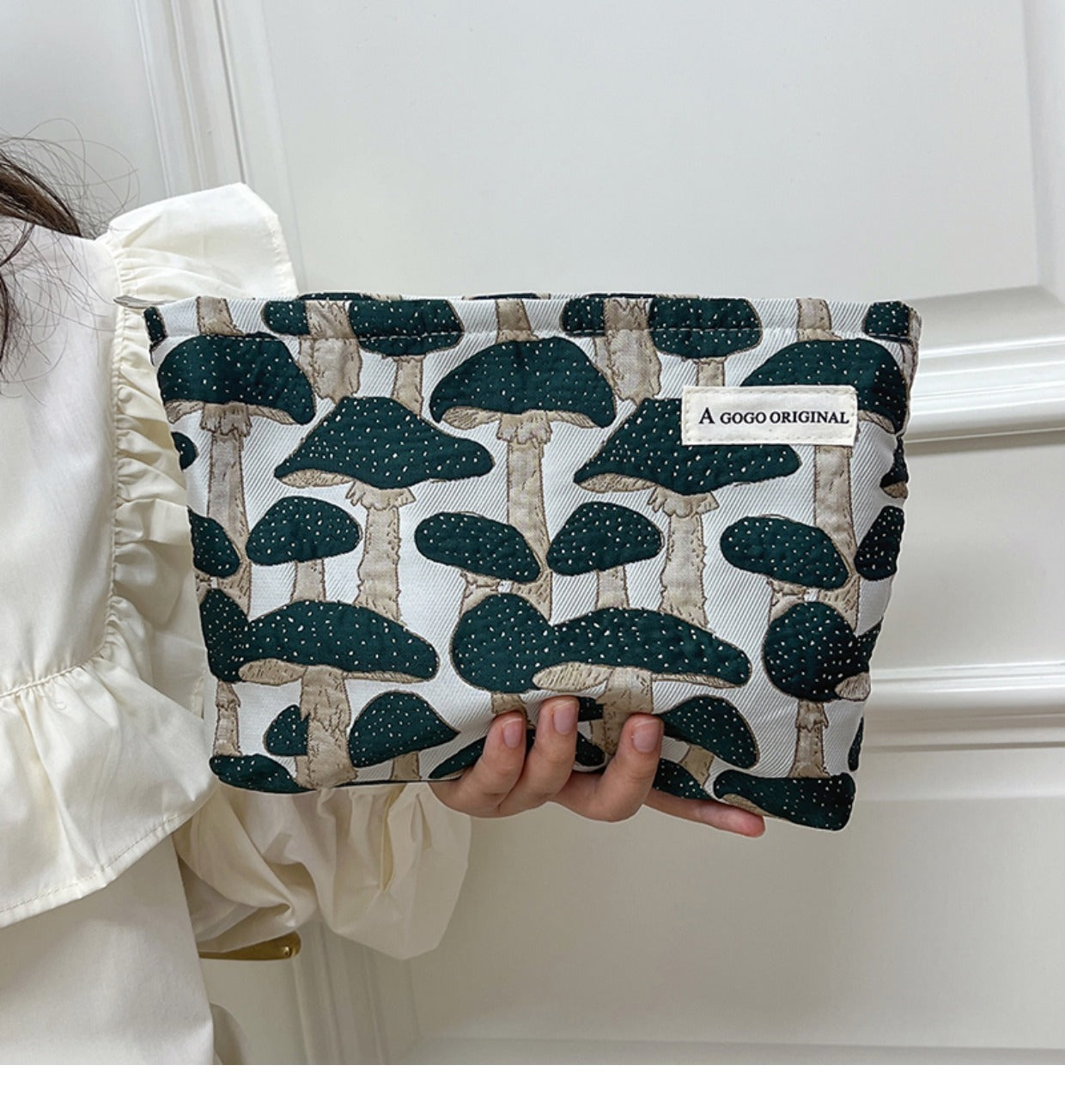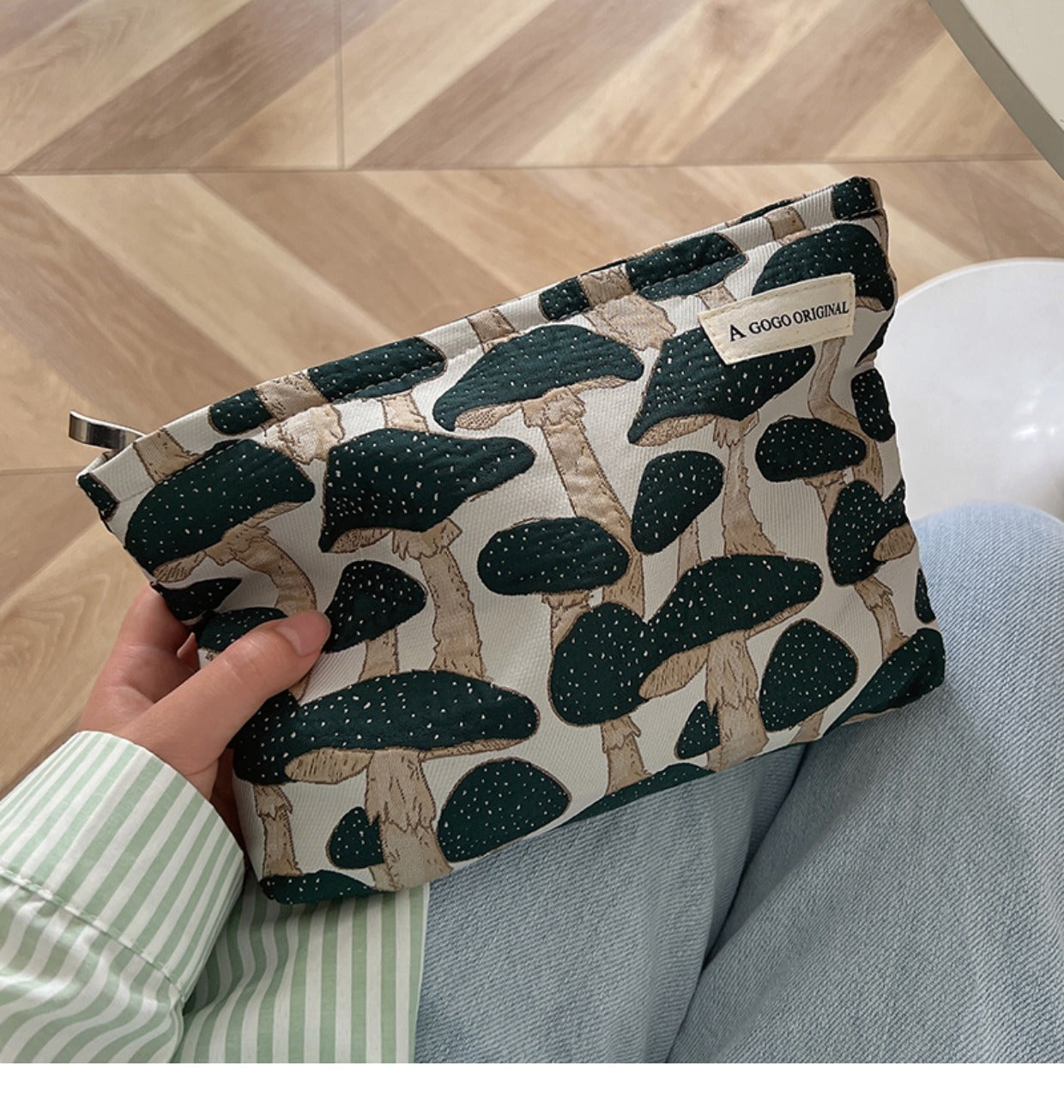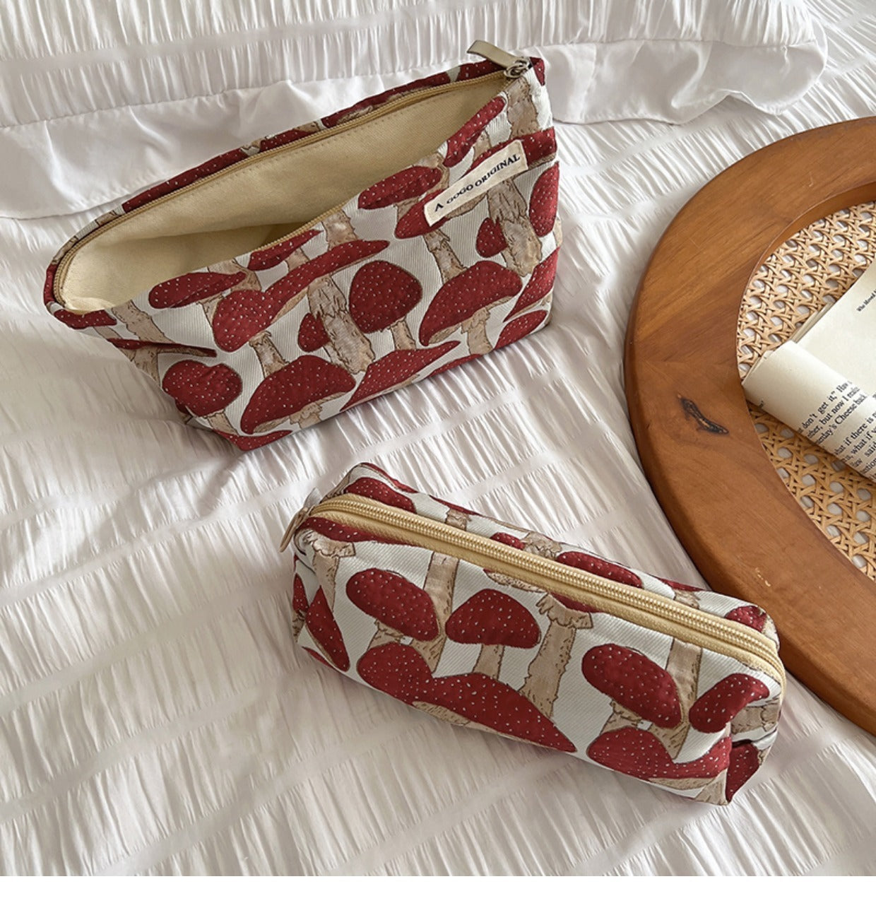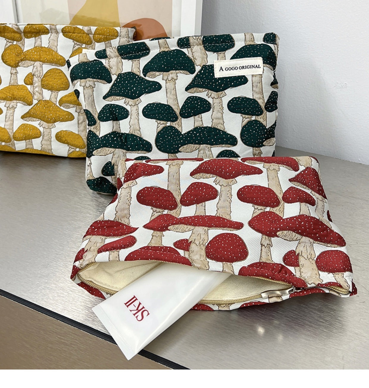 Color: Cosmetic Bag. Magic mushroom red, cosmetic bag. Magic mushroom dark green, cosmetic bag. Magic mushroom yellow, pencil case. Magic mushroom red, pencil case. Magic mushroom yellow, pencil case. Magic mushroom dark green