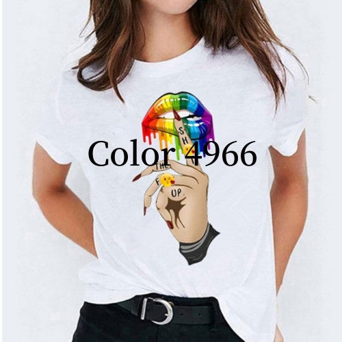 Lip Plus Size Casual Fashion Trends Loose Short Sleeve Women