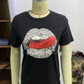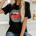 Lips Leopard Print Round Neck Short-sleeved Tshirt Women