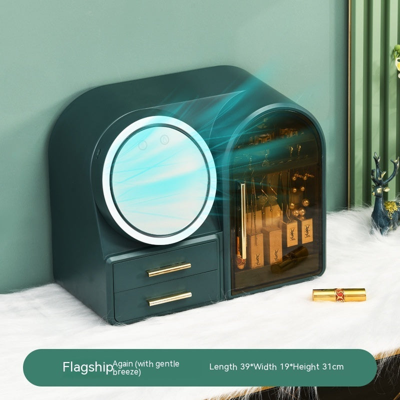 Color: Flagship [Milky White] three-color electrodeless dimming LED makeup mirror soft wind fan, flagship [light pink] three-color electrodeless dimming LED makeup mirror soft wind fan, flagship [dark green] three-color electrodeless dimming LED makeup mirror soft wind fan
