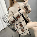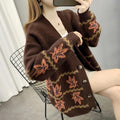 Maple Leaf Jacquard Knitted Cardigan Women's Loose Sweater