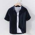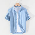 Men's Linen Short-sleeved Shirt Square Collar Casual Cotton And Linen