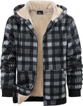 Men's Plaid Print Hooded Zip-Up Jacket Winter Thickened Cotton-padded Coat Warm Clothing