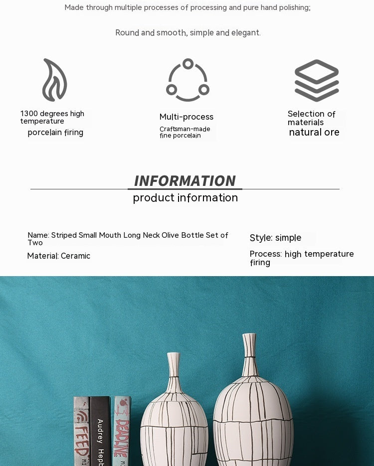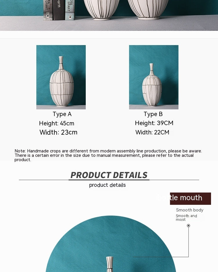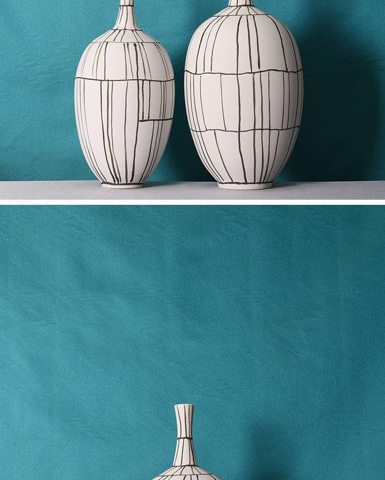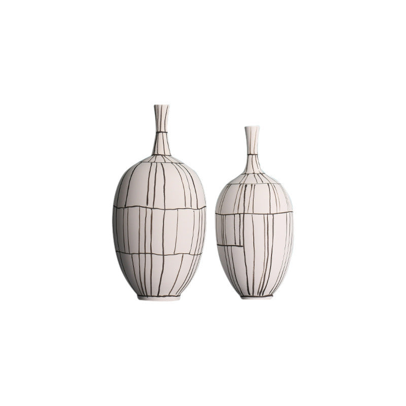 Modern Style Home Decoration Ceramic Frosted Small Mouth Striped Olive-shaped Vase