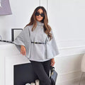 New Stand Collar Batwing Sleeves Cloak Top With Belt Ins Fashion Temperament Jacket Woolen Sweater Outwear For Women Clothing