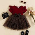 Pullover Cotton Sunken Stripe Short Sleeve Leopard Print Mesh Bow Girls Dress