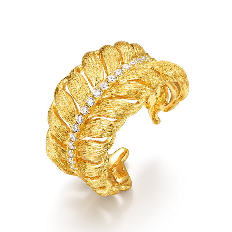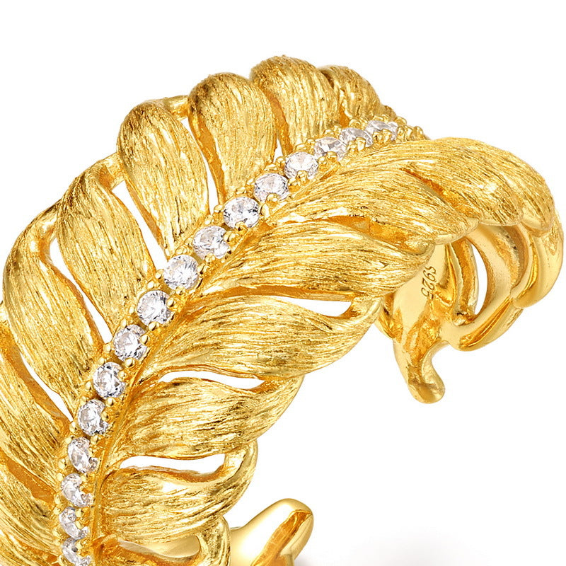 S925 Silver Plated Handmade Brushed Feather Vintage Ring