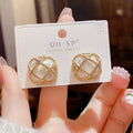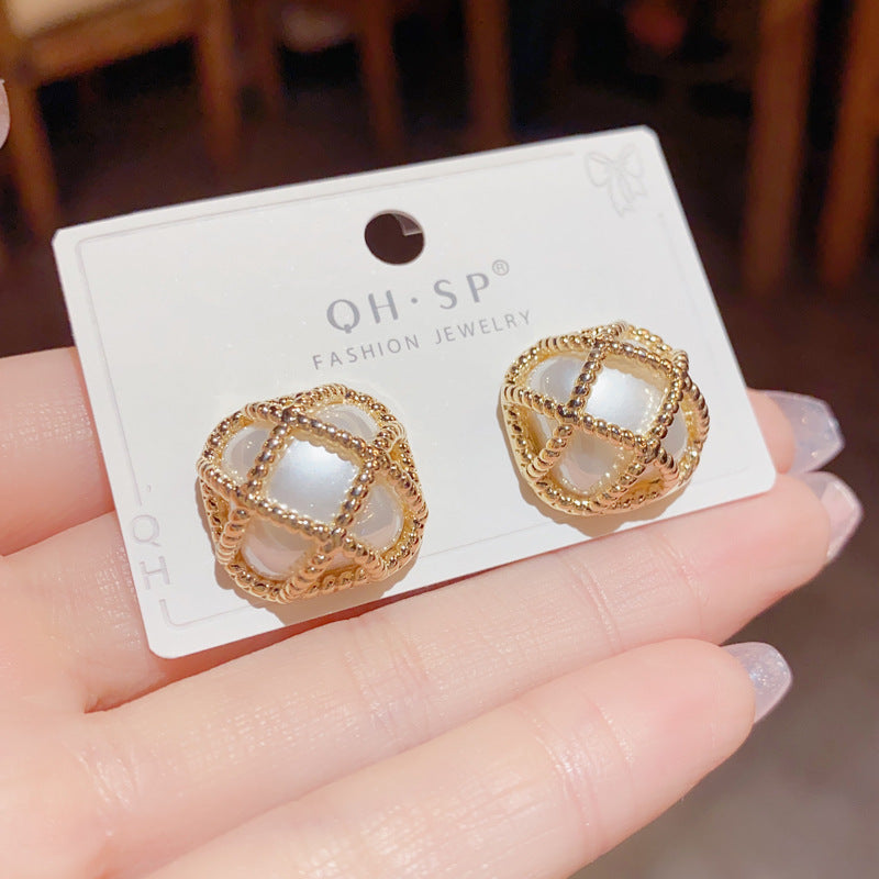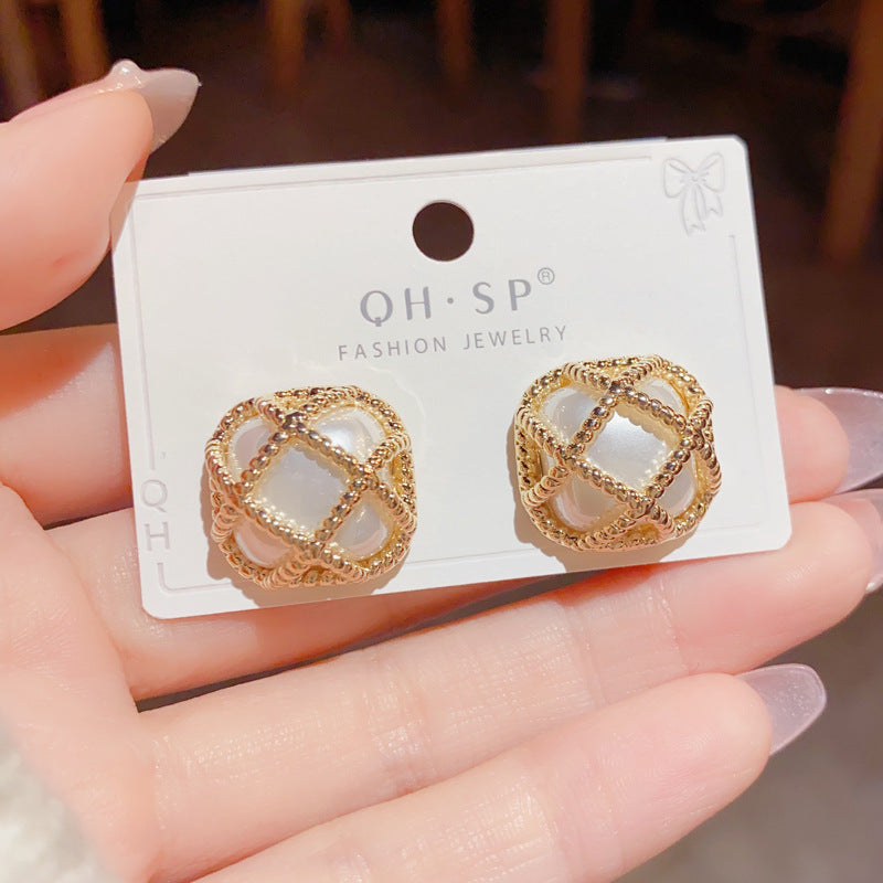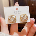 Small Group's Unique Design Sense Metal Mesh Square Pearl Earrings