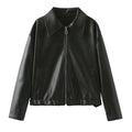 Solid Color Lapel Zipper Jacket Fashion Casual Long Sleeve Leather Coat Tops Women Clothing