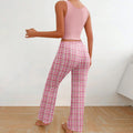 Spring Summer Women's Casual Pajamas Home Wear Vest Color Matching Plaid Trousers Letter Print Top Ladies 2 Pcs Home Clothes Sleepwear