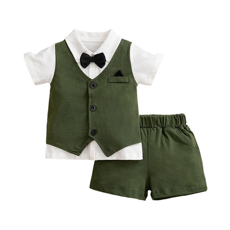 Summer Short-sleeved Children's Gentleman Two-piece Suit Male Baby Clothes