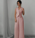 Summer Sleeveless Suit Fashion Lapel Button Vest Top And Pleated Straight Pants Women's Trousers Set Clothing