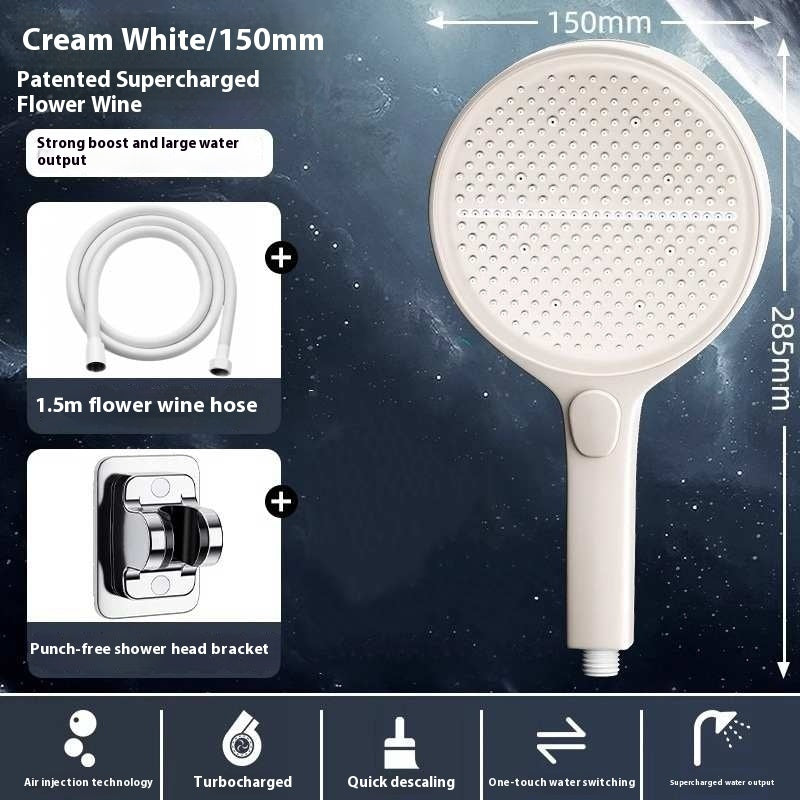 Specification: [silver plated] 15cm big panel shower head Bracket 1. 5MPVC hose, [texture Gray] 15cm big panel shower head Bracket 1. 5MPVC hose, [cream white] 15cm big panel shower head bracket 1.5MPVC hose