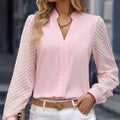 V-neck Long-sleeved Chiffon Shirt Lace Stitching Solid Color Tops Women Clothing
