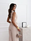 V-neck Sleeveless Jumpsuit With Belt Design Summer Fashion Trousers Women's Clothing