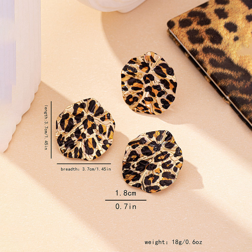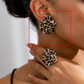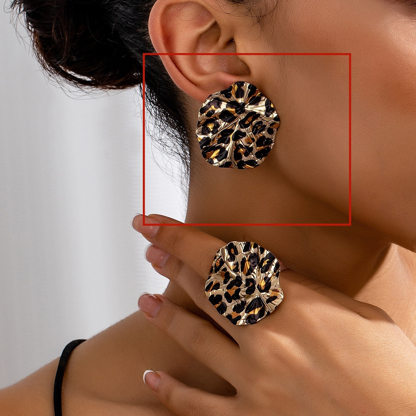 Vintage Geometric Leopard Print Circle Disc Fashion Design Ear Studs Ring Suit